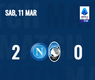 나폴리 FC는 3월 12일 02시(우리나라 시간 기준)에 아탈란타와 경기를 가졌으며 2:0으로 승리를 거뒀다.