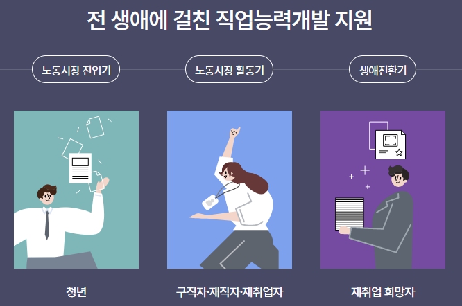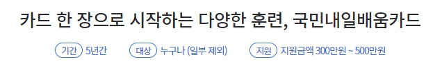 국민내일배움카드는 빠른 기술발전과 노동시장 변화에 대비하여 국민들이 스스로 직업훈련을 실시할 수 있도록 나라에서 훈련비를 지원하는 제도입니다.